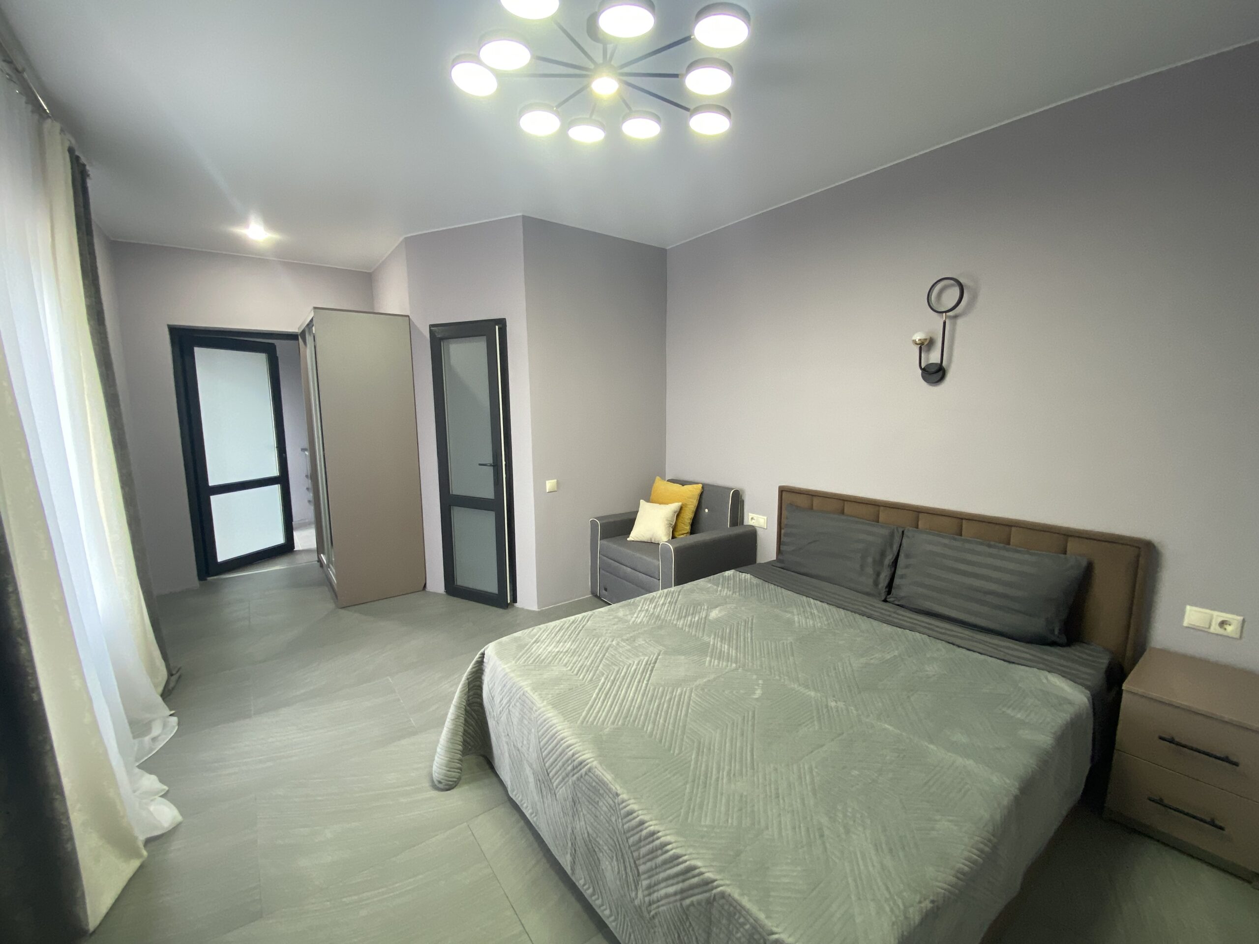 С просторной спальней с возможностью поставить дополнительное спальное место.
